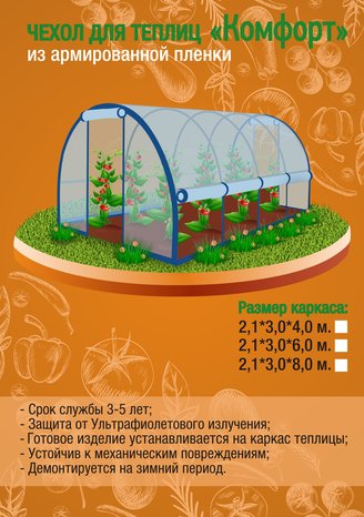 Чехол д/теплиц 3*4м Комфорт с боков проветрив (арм пл 200мк.+ усил швы)