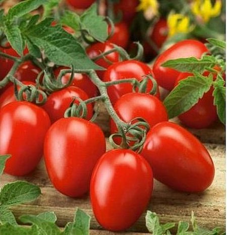 Плоды средней массой 30-50 г, ярко-красные, без зелёного пятна, сливовидной формы, гладкие, очень прочные.