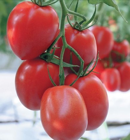 Среднеспелый гибрид томата с необычной формой плода для малообъемной технологии выращивания. Растения сильнорослое, индетерминантные, с открытым габитусом. Плоды яйцевидной формы, равномерной ярко-красной окраски, гладкие, блестящие, средняя масса плода составляет 130-150 г. Соцветие длинное, довольно прочное и, как правило, не заламывается. Гибрид генетически устойчив к вирусу табачной мозаики, кладоспориозу, фузариозу и вершинной гнили.