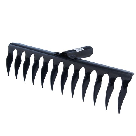 Грабли имеют оптимальную ширину для проведения различных работ в саду. Инструмент поставляется без черенка. Изделие выполнено из прочной стали с порошковым покрытием. Толщина зубьев составляет 3 мм, что позволяет с удобством убирать траву, листья и мусор.