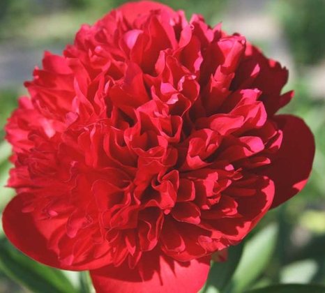 Пион травянистый Диана Паркс (Paeonia Diana Parks) Высота растения 70-90 см. Корончатый, розовидный, цветок диаметром 12 см, густомахровый, плотный, оригинальной окраски, алый (ярко-красный с лёгким оранжевым отливом), блестящий. Цветут в июне — июле.