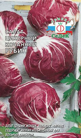 Рубин Раннеспелый (75-95 дней) сорт. Розетка листьев мощная. Листья широкие, сидячие, цельнокройные. Кочан округлый, плотный, компактный, с интенсивной красно-бордовой окраской с белыми жилками, массой 400-450 г. Вкус со слабой горечью. Ценность сорта: холодостойкость, выравненность кочанов, дружная отдача урожая, пригодность для хранения до 1 месяца. Содержит аскорбиновую кислоту, витамины, микроэлементы, белок и инулин, полезный для больных сахарным диабетом. В пищу используется в свежем и тушёном виде, для приготовления пикантных салатов, добавок к холодным закускам и различным блюдам.